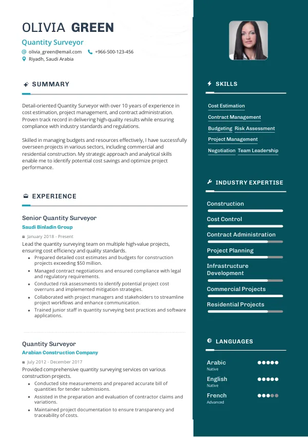 Ensure your resume meets local standards for Quantity Surveyors.