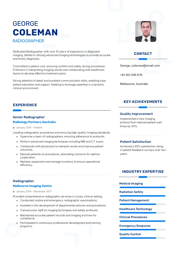 For most radiographers, a one to two-page resume is ideal, focusing on relevant experience and qualifications.