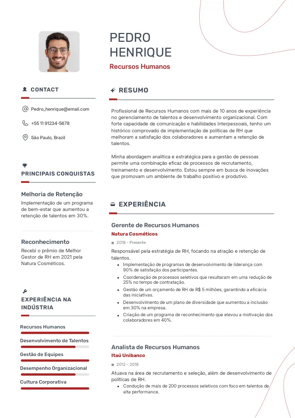 - Foque em experiências que demonstram suas habilidades e conhecimentos em Recursos Humanos.