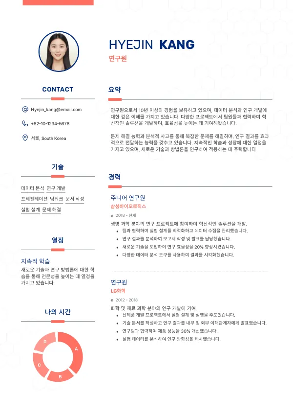 - 좋음: 연구와 관련된 경력만을 강조.