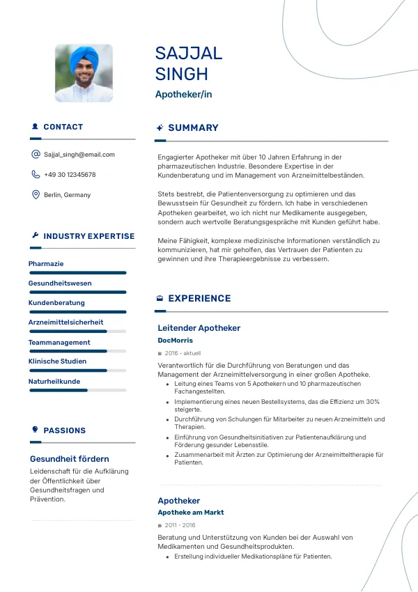 Berufserfahrene Apotheker sollten sich auf ihre spezifischen Erfolge konzentrieren und nachweisen, wie sie zur Optimierung der Abläufe beigetragen haben. Sie sollten auch ihre Führungskompetenzen betonen, wenn sie in der Vergangenheit Teams geleitet haben.