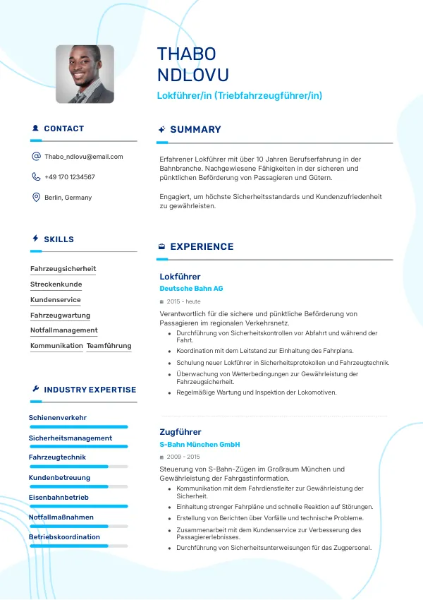 Als Lokführer in Deutschland sind Sie für die Sicherheit und Effizienz des Schienenverkehrs verantwortlich. Ein professionelles und fehlerfreies Resume ist entscheidend, um die Aufmerksamkeit von Recruitern zu gewinnen. Häufige Resume-Fehler können Ihre Chancen auf ein Vorstellungsgespräch erheblich mindern. Überprüfen Sie Ihr Resume frühzeitig, um wiederholte Absagen zu vermeiden.