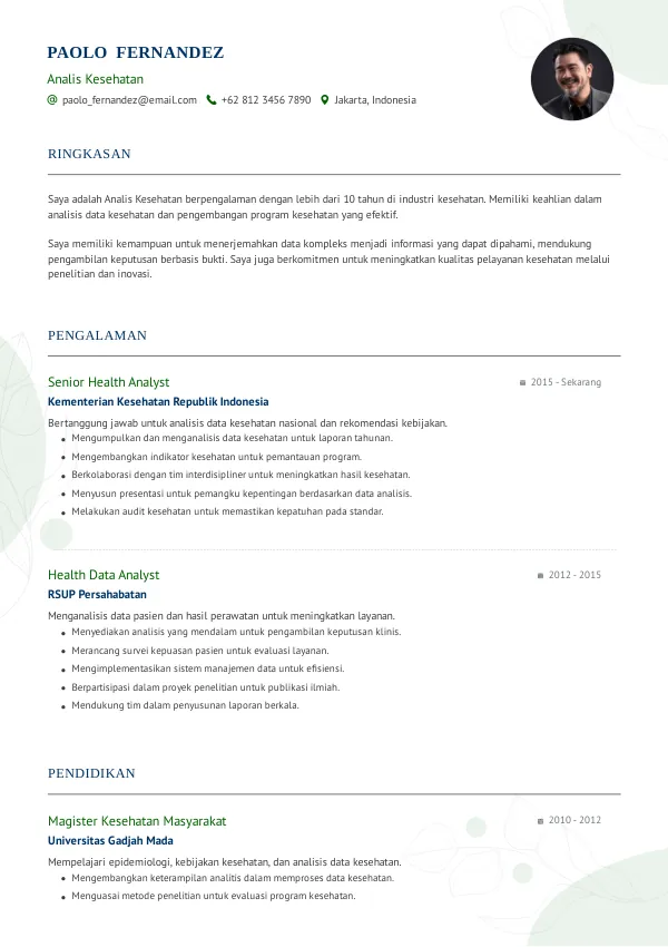 - Bad: Mencantumkan pengalaman di bidang yang tidak ada hubungannya dengan kesehatan.
