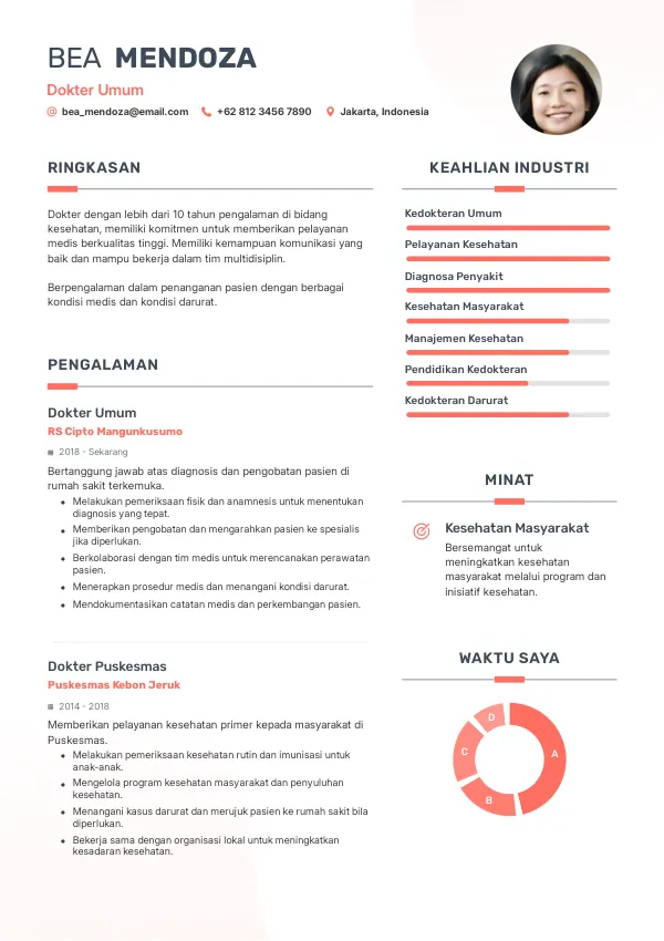 Dokter dengan pengalaman menengah sering kali tidak menekankan pencapaian. Tambahkan statistik atau hasil penting untuk menunjukkan kontribusi Anda.