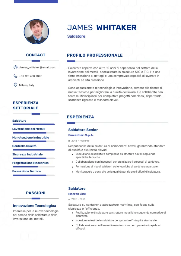 - Better: Focus su esperienze specifiche nel settore della saldatura.