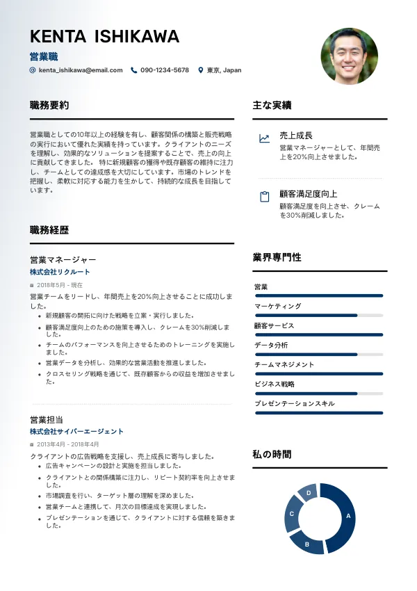 営業職に関連する成果やスキルを強調し、具体的なデータを示すことが大切です。