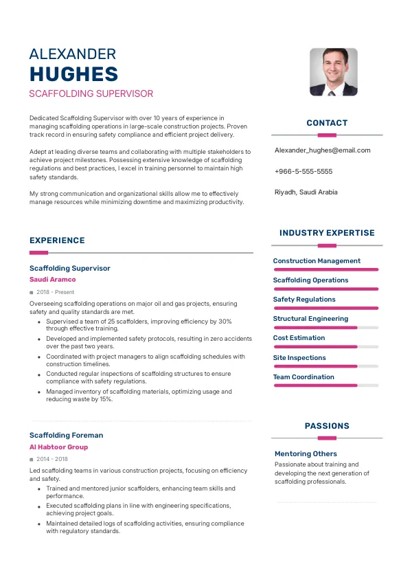 Don't let simple mistakes cost you your next job opportunity as a Scaffolding Supervisor. Review your resume today to ensure it meets the standards expected by recruiters in Saudi Arabia.
