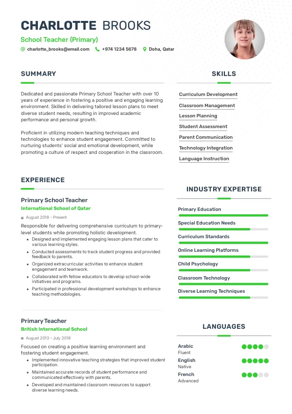 - Bad: No mention of knowledge of the Qatari curriculum.