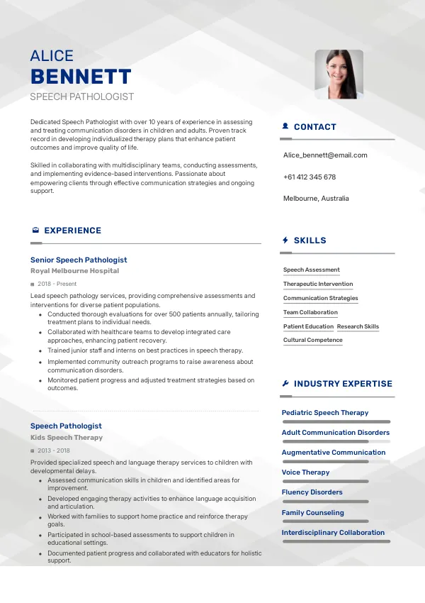 Focus on relevant skills, qualifications, and quantifiable achievements related to speech pathology.