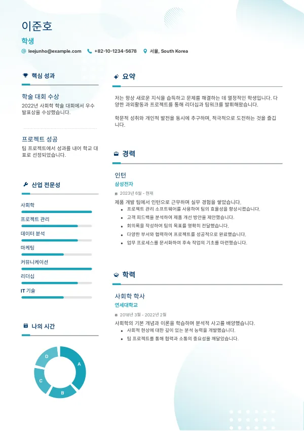 이력서는 간결하게 본인의 정보와 경험을 정리하는 것으로 시작하세요.