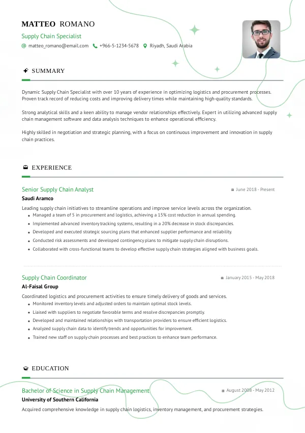 Recruiters in Saudi Arabia often face a high volume of applications for Supply Chain Specialist positions. They quickly scan resumes for relevant experience and keywords. Many candidates miss out on interviews due to formatting issues or lack of clarity in their experience descriptions. A professional review can help identify these unnoticed problems.