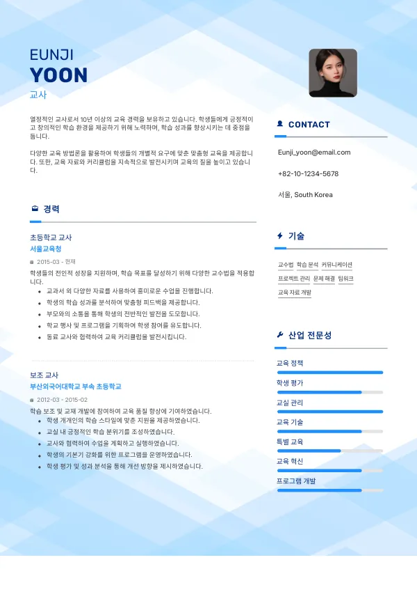 경험이 많은 교사는 리더십 경험과 교육 프로그램 개발 능력을 강조해야 하며, 경력의 연속성을 보여주어야 합니다.