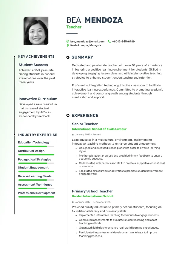 Recruiters in Malaysia prioritize resumes that are clear, concise, and tailored to the job description. They often use ATS to screen applications, meaning that resumes must include relevant keywords for successful parsing.