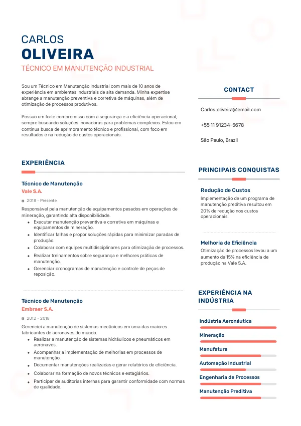 - Melhor: Incluir habilidades como "Manutenção de Máquinas", "Leitura de Diagramas Elétricos", e "Sistemas Pneumáticos".