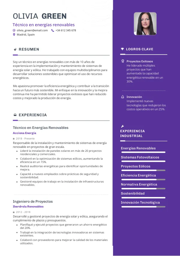 - Mejor: Enfocar la experiencia en roles relacionados con energías renovables.