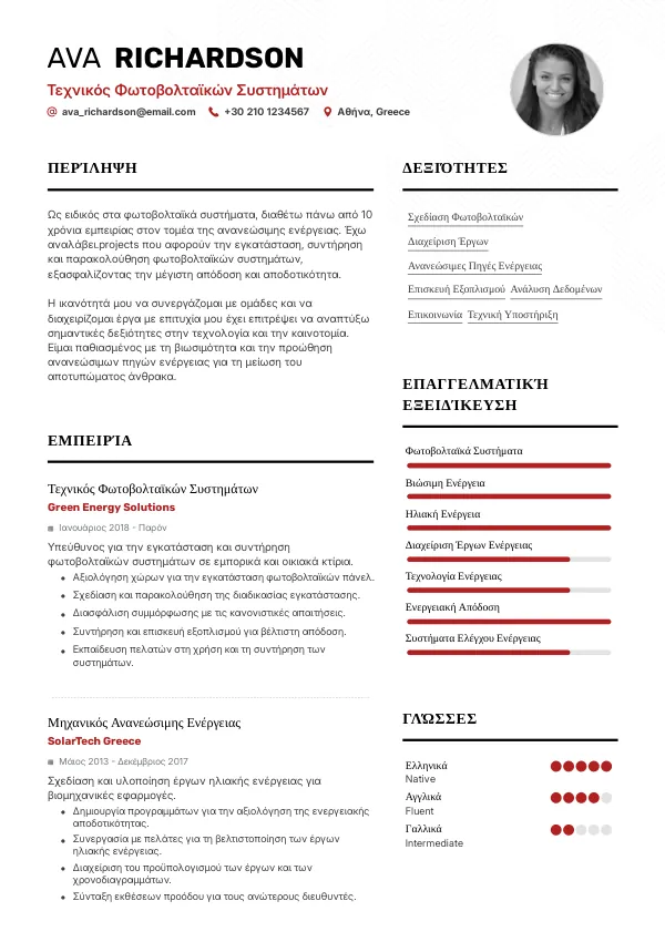 Ως Τεχνικός Φωτοβολταϊκών Συστημάτων στην Ελλάδα, η αγορά εργασίας είναι ανταγωνιστική. Πολλοί υποψήφιοι κάνουν λάθη στα CV τους που μειώνουν τις πιθανότητες πρόσληψης. Είναι σημαντικό να ελέγξετε το CV σας για να αποφύγετε τις συχνές απορρίψεις και να ενισχύσετε την παρουσία σας στην αγορά εργασίας.