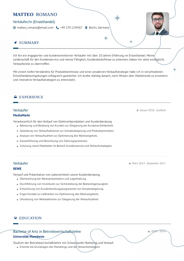 Lebensläufe für Verkäufer/innen sollten besonders auf Kundenservicefähigkeiten und Verkaufserfolge fokussiert sein. Optimieren Sie Ihren Lebenslauf, um sicherzustellen, dass er die Erwartungen von Recruitern erfüllt.
