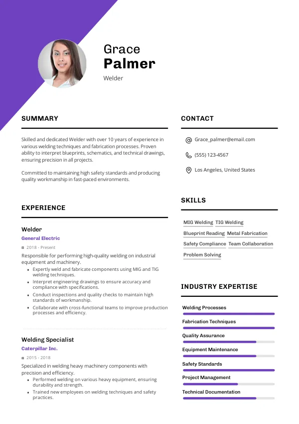 - Better: "Executed MIG welding on structural components, improving efficiency by 15%."